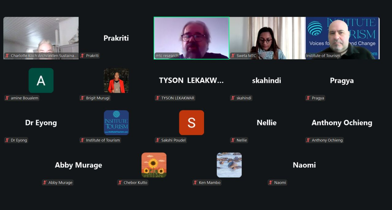 Following an introduction into Meaningful Tourism by PROF M, your humble editor, and a short presentation on Carbon Credit Trading by the MTC partner AIROI, MTC trainers Richard Julius, Brigit Murugi, Biubwa Omar, Eyong Ayuok Ako- Ebot PhD, and Ropafadzaishe Mushoorwa explained why Meaningful Tourism can make a difference in achieving a sustainable and profitable future for tourism in South Africa, Kenya, Tanzania, Cameroon, and Zimbabwe.
