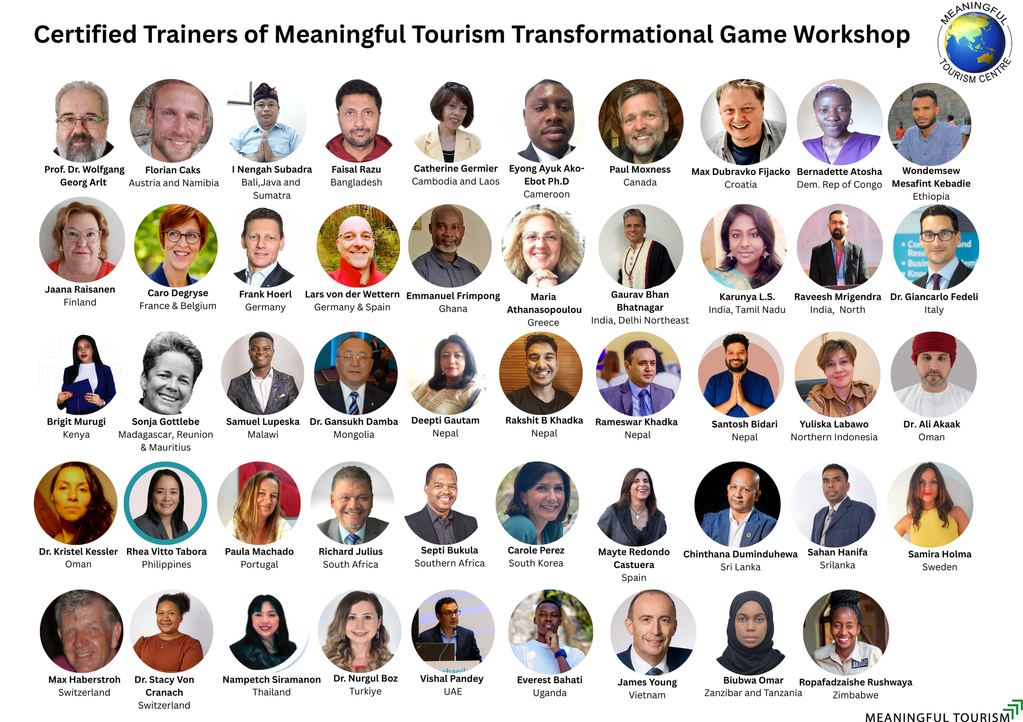 Please find below the updated overview of all our Certified Trainers for the Meaningful Tourism Transformational Game Workshop and the updated World Map showing the countries directly and indirectly covered at the moment.