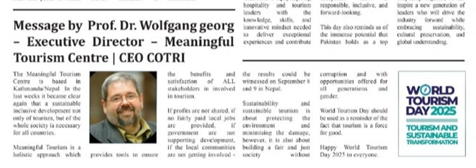 Meaningful Tourism Weekly is published every Thursday by Meaningful Tourism Centre (MTC) - London and Kathmandu in collaboration with Travel Asia Now, led by Rhea Vitto Tabora. This partnership enhances the newsletter’s professional production and distribution, bringing added value to our readers.