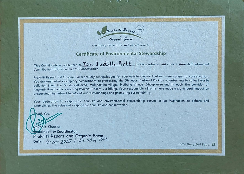 Guests of Prakriti Farm are encouraged to use their walks along the many hiking routes in the area to execute their Environmental Stewardship by collecting trash on the way, from empty plastic bottles to chips wrappers and discarded plastic bags.