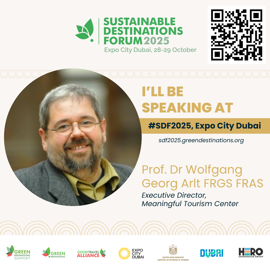 Prof. Dr. Wolfgang Georg Arlt and Dr. Ali Akaak (Meaningful Tourism Trainer for Oman) will speak at the Sustainable Destinations Forum (SDF) 2025 Day 2 Workshop Session 5 titled "Adding a Good Travel Experience as a Premium Value to the Marketplace."