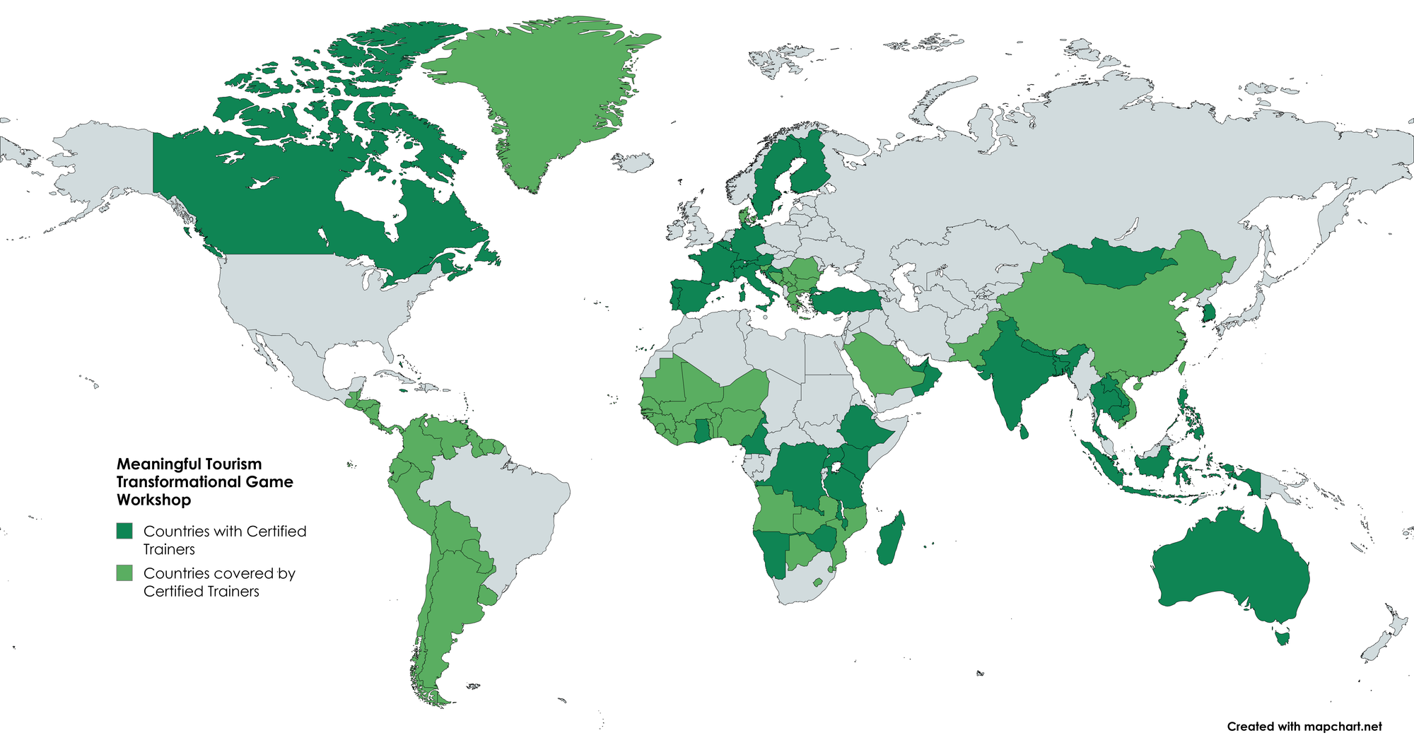 Please find below an overview of all our Certified Trainers for the Meaningful Tourism Transformational Game Workshop, along with the World Map showing the countries currently covered directly or indirectly.