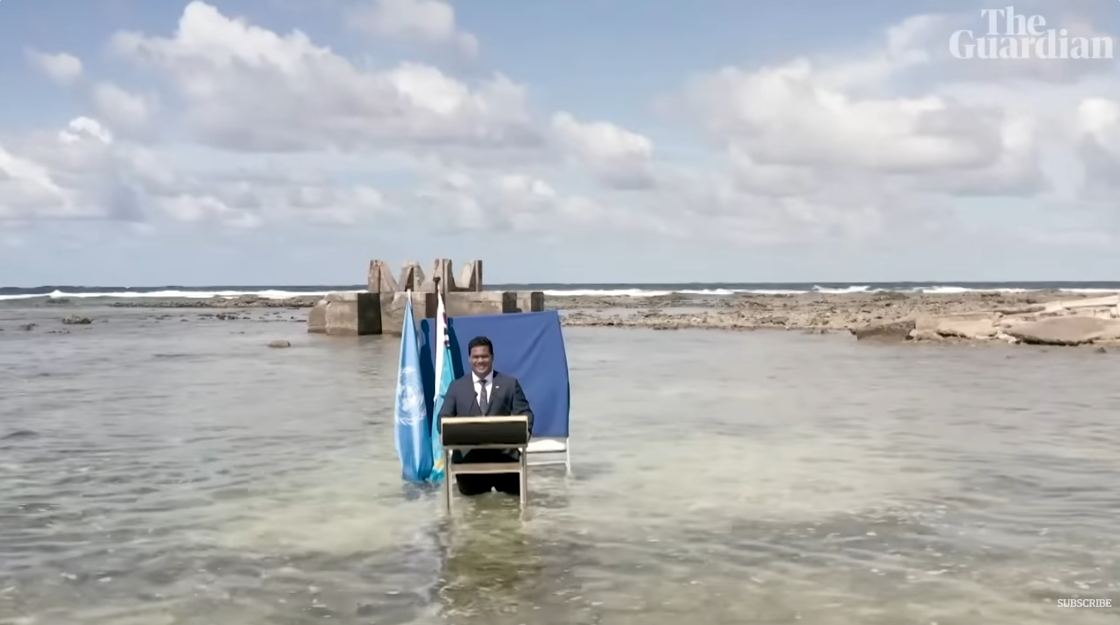 Tuvalu, a group of nine islands in the South Pacific with approximately 11,000 inhabitants, is sinking. The islands are located less than five meters above sea level.