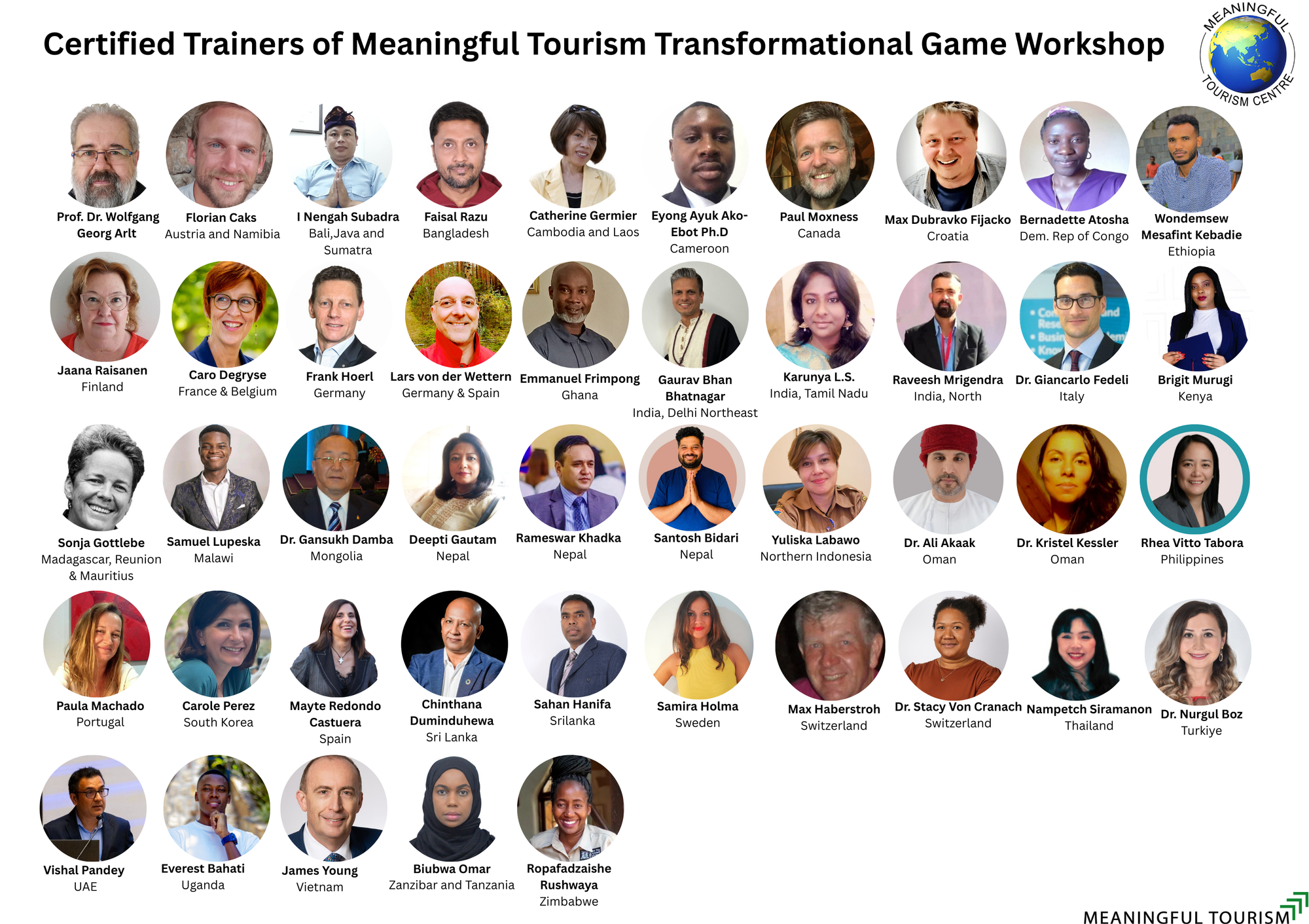 Please find below an overview of all our Certified Trainers for the Meaningful Tourism Transformational Game Workshop, along with the World Map showing the countries currently covered directly or indirectly.